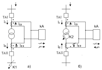 а - внешнее КЗ; б - КЗ в трансформаторе.