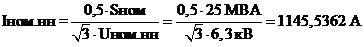 - сквозной максимальный ток трехфазного КЗ на шинах НН.