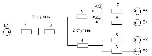 Где Е1 - ЭДС системы, 1 - сопротивление системы, 2 - сопротивление
