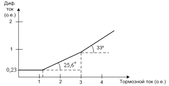 рассчитанные уставки сведены в таблицу 4.1 и построена тормозная характеристика