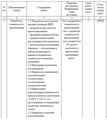 . Проект календарного плана выполнения работ по ОКР «технико-экономическое обоснование
