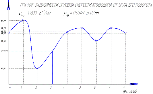 кривошипа, для чего построены 8 положений механизма; вычислены приведенные