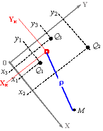 {X,Y} вычисляются с учетом координат и долевых коэффициентов дебита каждой