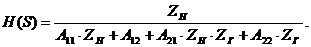 . Нахождение основной матрицы A и системной функции исследуемого четырёхполюсника