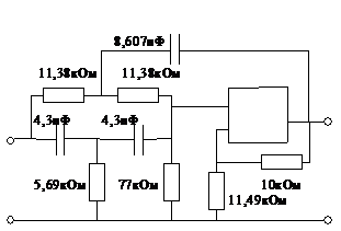 = 8,607 нФ, С2 = 0 нФ, С3 = 4,3 нФ, R1 = R2 = 11,38 кОм, R3 =