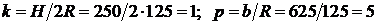 источника до точки детектирования, т.е. b=625·2=1250см, р = b/R=1250/125=10.
