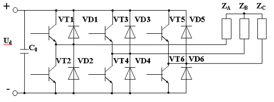 как правило, автономный инвертор напряжения с 6 ключами. При управлении ключами