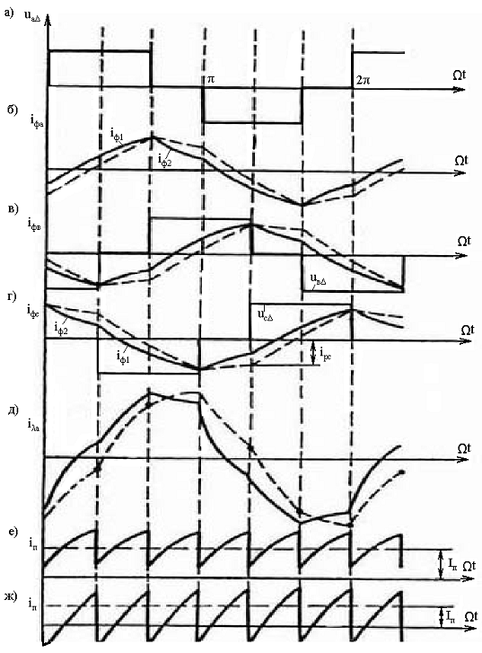 АІН. При роботі автономного інвертора з ШИМ на обмотку двигуна, струм у