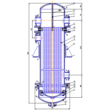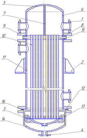 - перегородка; 8 - трубна дошка; 9 - фланець; 10 - труби; 11 - обичайка; 12 -