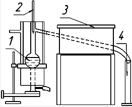 состава топлива: 1- колба; 2-термометр; 3- холодильник; 4- мерный сосуд.