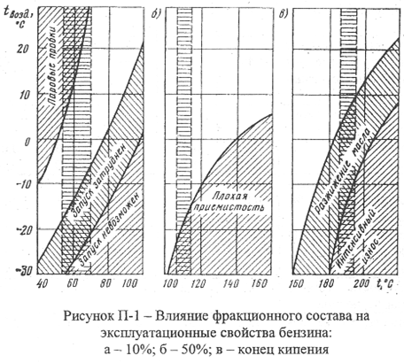 фракции, тем лучше пуск двигателя. Для бензинов 10% топлива должно выкипать при