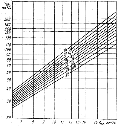 50° и 100 °С для данного масла и точка пересечения с прямой на номограмме