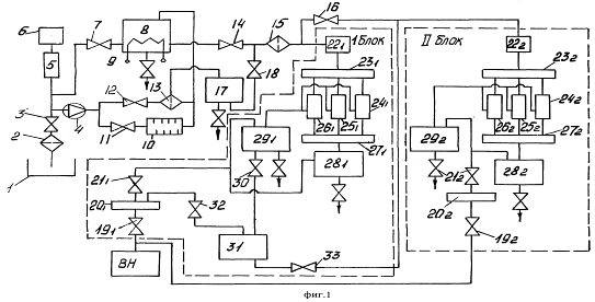 15 тонкой очистки, выход которого соединен с первым блоком вакуумной