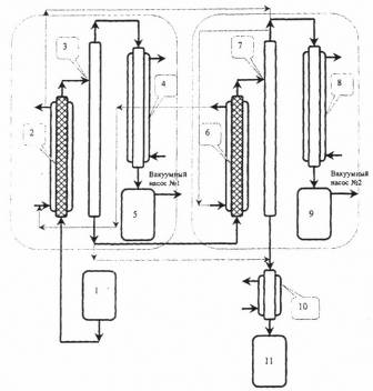 перегонки, а через вентиль 16 - со вторым блоком вакуумной перегонки
