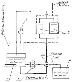 с емкостью 6 щелочного раствора и через вентиль 7 с емкостью 8