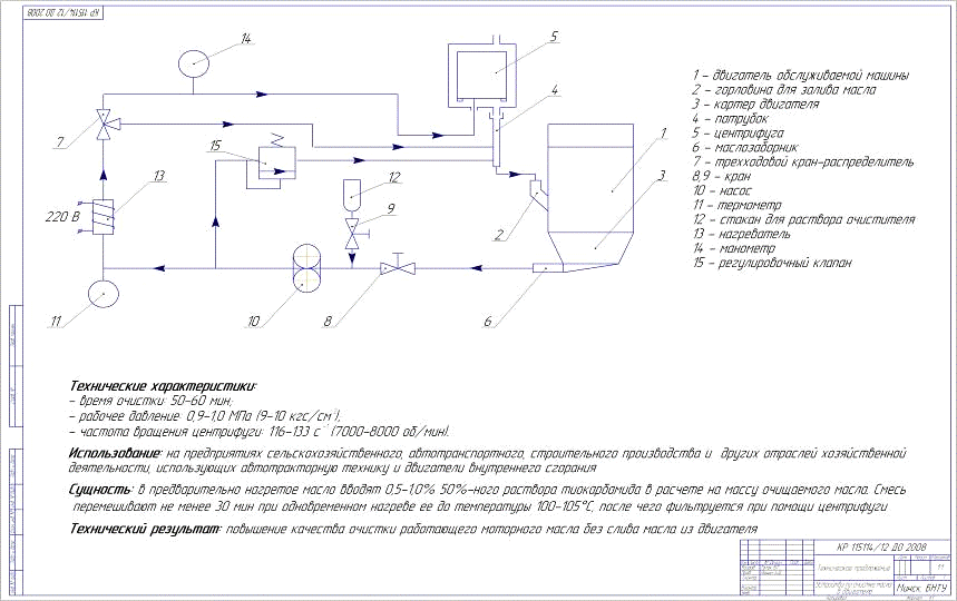 от двигателя 1. На этом очистка работающего масла заканчивается.