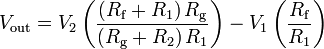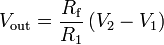 входів V- і V+ (іншими словами, струм, що протікає через ці входи, рівний
