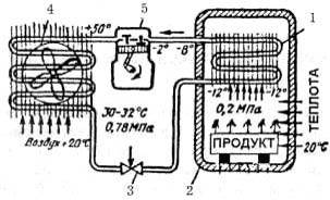 регулирующий вентиль; 4 - конденсатор; 5 - компрессор