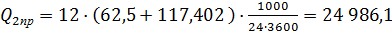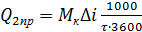 СНД: M = Q0/q0= 57.395/1234 = 0.05 (кг/с)