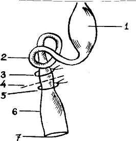 достигает базальной мембраны клеток - мишеней концевого отдела дистальной части