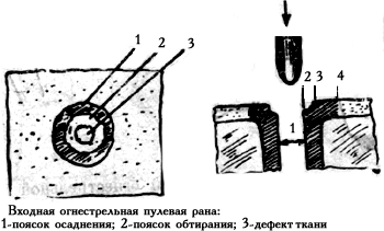 огнестрельной раны (отверстия), раневого канала и выходной огнестрельной раны.