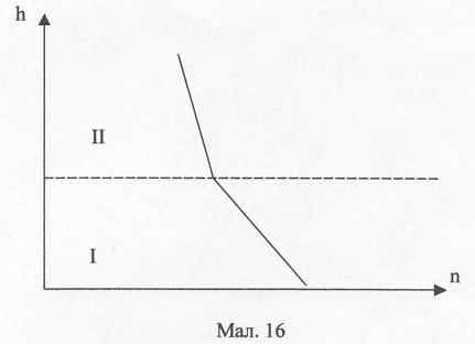 біля самої поверхні землі чи води охолоджене; зміна n з висотою h показано на