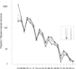 краям, указывающими на нормальный ход дифференциации расплава с понижением