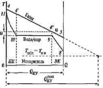 вместе с Q, T - диаграммой передачи теплоты от газов к пароводяному рабочему