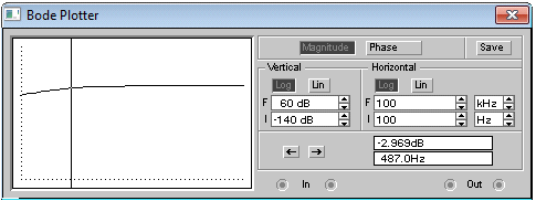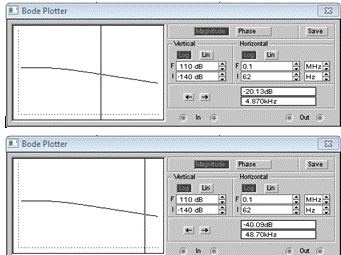 ) Используя измеритель АЧХ и ФЧХ (Bode Plotter)