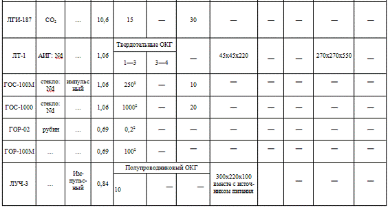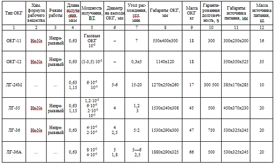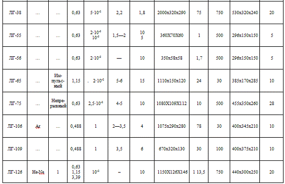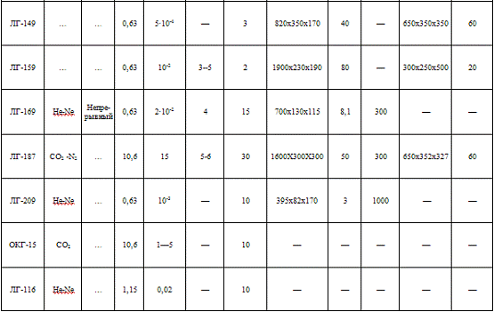 По результатам расчётов выбираем тип лазера ЛГ-209 с