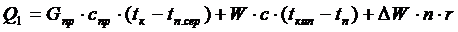 використовуваного тепла, втрат тепла зовнішніми поверхнями обладнання в
