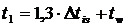 (2.2.21) розраховуємо перепад температур в ізоляційному шарі тена