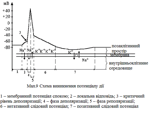 збудливої клітини потенціалу дії приводить до появи на мембрані «подовжньої» різниці