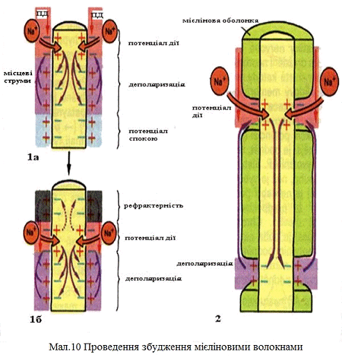 ділянками - струмів дії. Ці струми, у свою чергу, викликають в не збуджених