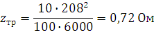 - приведенное активное сопротивление трансформатора