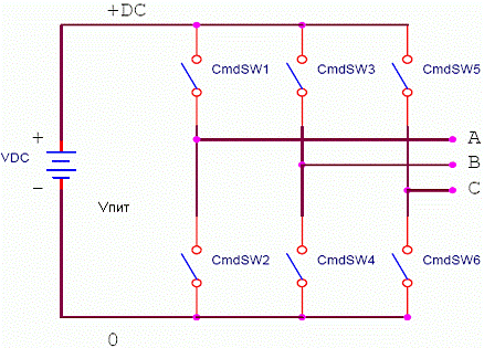 бесколлекторного электродвигателя. Была создана силовая часть данной схемы,