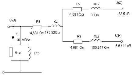 Рис. 2.1 - Схема замещения для участка линий