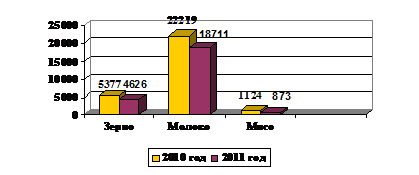 было произведено 18711 ц, что на 3508 ц. ниже, чем в 2010 г., мясо в 2011 году