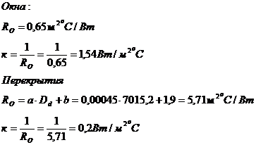 коэффициенты теплопередачи для окон и перекрытий.