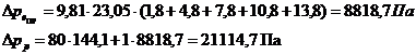 равны 18952,9 Па, сравниваем с расчётным гидравлическим давлением 21114,7 Па