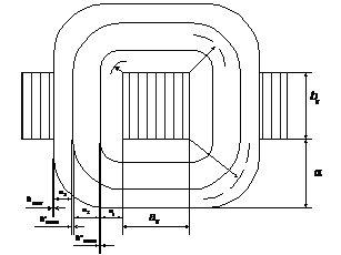 Рис.4.1 Изоляционные расстояния при размещении обмоток на каркасе.