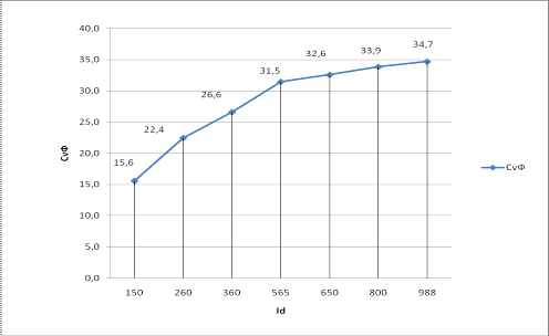 Построим графики СυФ(I) в масштабе 0,2 В/км/ч и FКД(I) в масштабе тока МI=5 A/мм; силы тяги МF=0,5 кН/мм по данным таблицы 1.
