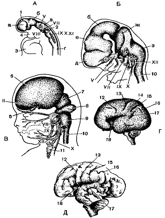 развития человека и преобразования его черепно-мозговых нервов на протяжении