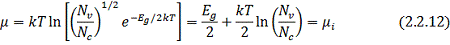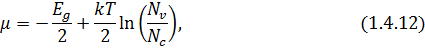 (2.2.7), пересекает уровень Ферми в собственном полупроводнике (1.4.11) [5].