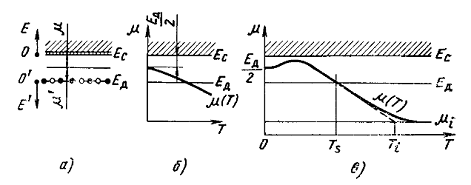 зависимость энергии уровня Ферми в полупроводнике донорного типа.