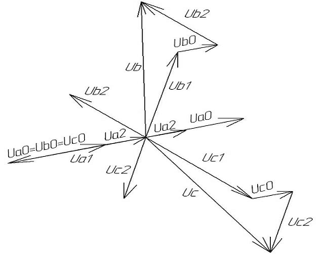 Векторные диаграммы токов и напряжений для несимметричных КЗ