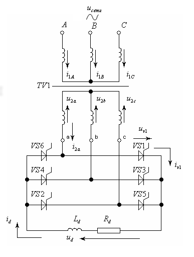 регулирование выпрямленного напряжения с помощью управляемых вентилей -