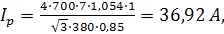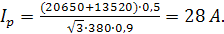 Определяем рабочий ток кабеля питающей сети