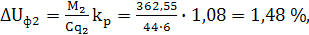 Находим фактическую потерю напряжения на этом же участке