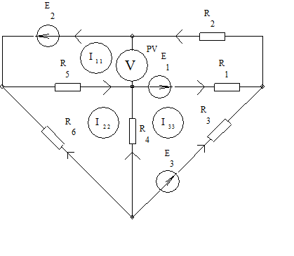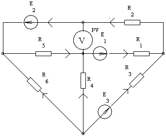 E1=21 В; E2=4 В; E3=10 В; R1=5 Ом; R2=7 Ом; R3=2 Ом; R4=8 Ом; R5=1 Ом; R6=1 Ом и составить баланс мощностей;